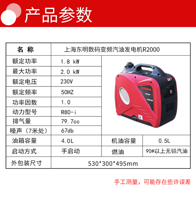 * 表示必填采購:小型房車2KW數碼變頻汽油發電機R2000