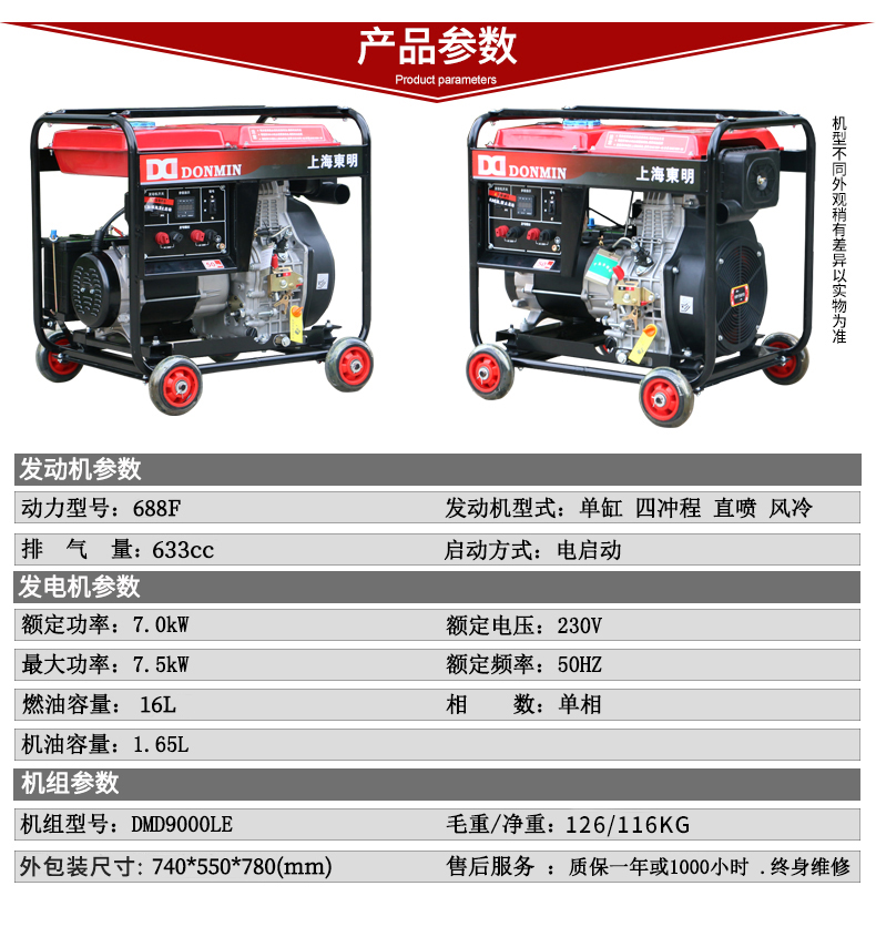 上海東明 7千瓦單相小型柴油發電機組型號DMD9000LE