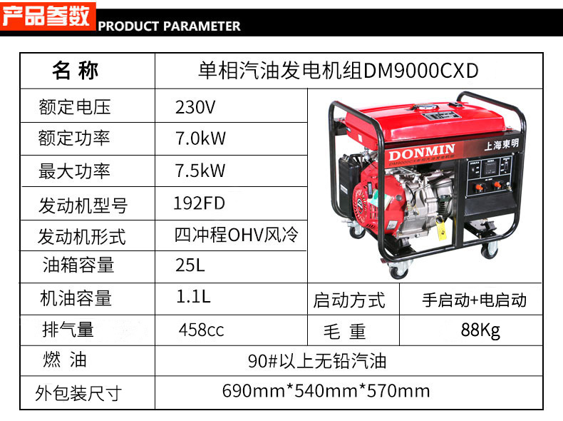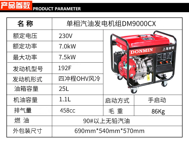 * 表示必填采購:單相7kW小型汽油發電機組DM9000CXD