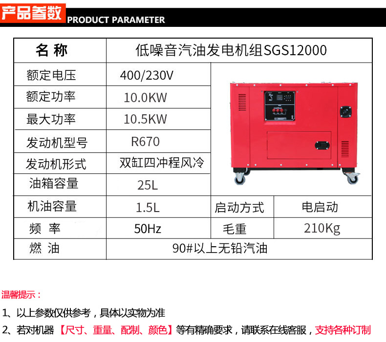 * 表示必填采購:三相10kW低噪音汽油發(fā)電機(jī) SGS12000